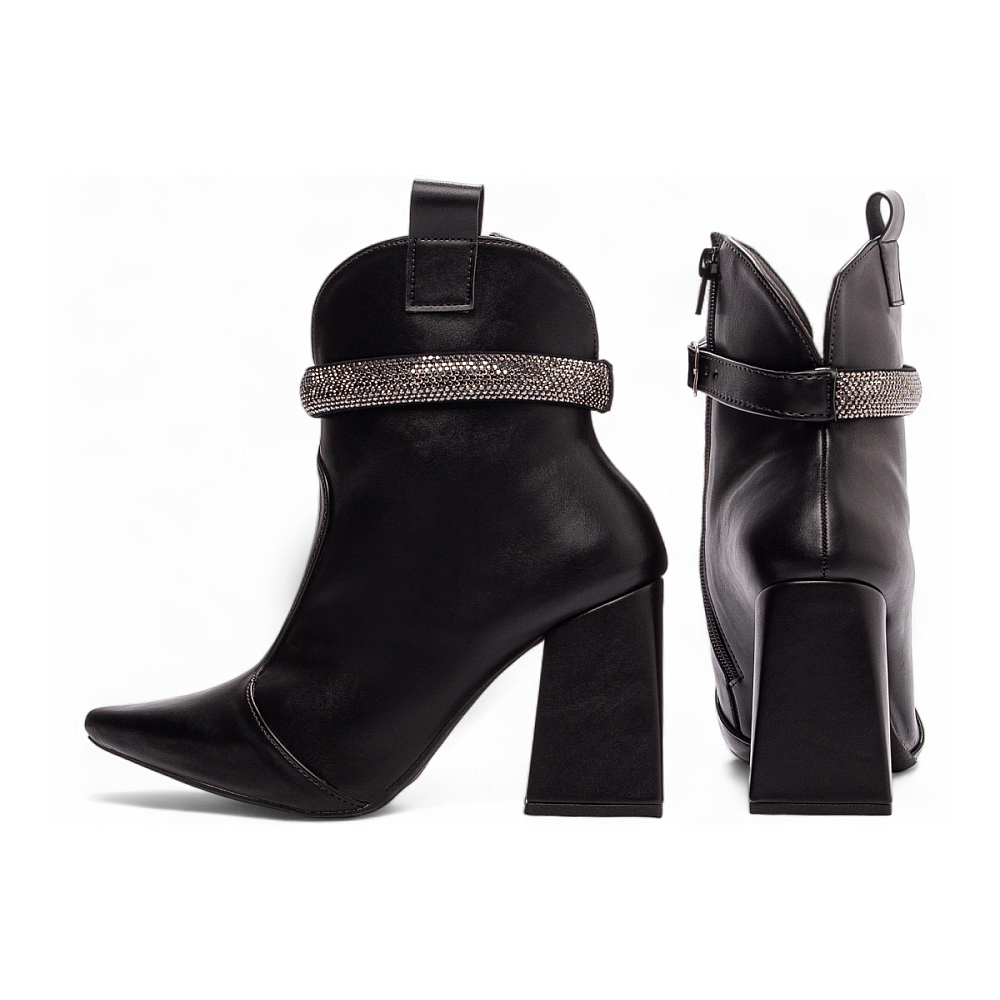 Enfeites: Zíper na Cor Preto (lateral interna) e Pulseira Removível com Fivela de Ajuste na cor Prata e Manta de Strass Prata;