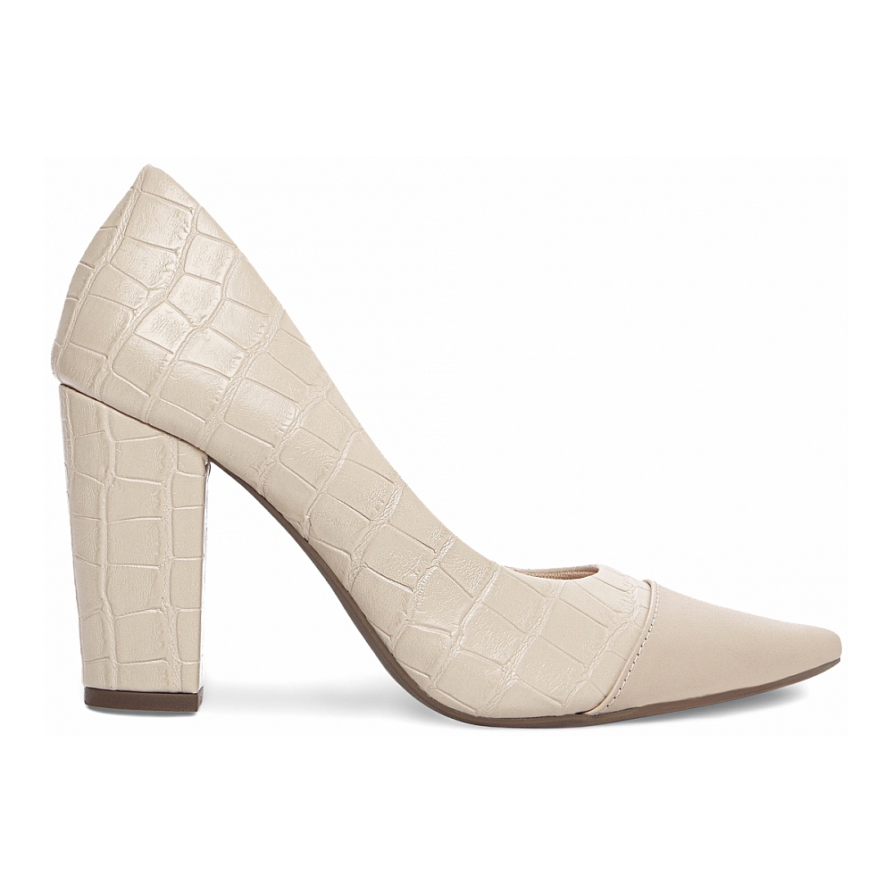Salto: Grosso com 9 cm de Altura Revestido em Croco Bege Marfim;